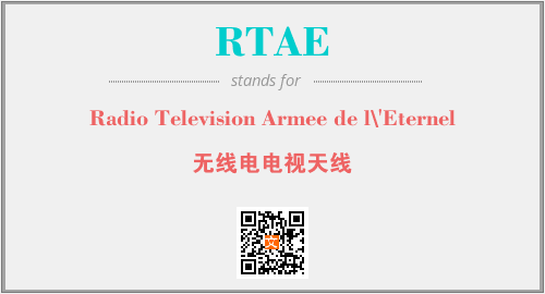 英文缩略词“RTAE”经常作为“Radio Television Armee de l\'Eternel”的英文缩写来使用,中文表示:“无线电电视天线”。本文将详细介绍英文缩写词RTAE所代表英文单词,其对应的中文拼音、详细解释以及在英语中的流行度。此外,还有关于缩略词RTAE的分类、应用领域及相关应用示例等。