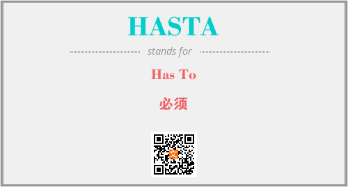 上述内容是“Has To”作为“HASTA”的缩写,解释为“必须”时的信息,以及英文缩略词HASTA所代表的英文单词,其对应的中文拼音、详细解释以及在英文中的流行度和相关分类、应用领域及应用示例等。