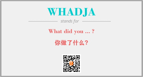上述内容是“What did you ... ?”作为“WHADJA”的缩写,解释为“你做了什么?”时的信息,以及英文缩略词WHADJA所代表的英文单词,其对应的中文拼音、详细解释以及在英文中的流行度和相关分类、应用领域及应用示例等。