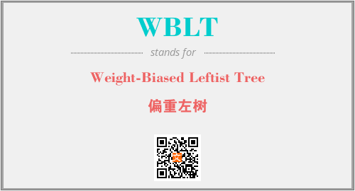 上述内容是“Weight-Biased Leftist Tree”作为“WBLT”的缩写,解释为“偏重左树”时的信息,以及英文缩略词WBLT所代表的英文单词,其对应的中文拼音、详细解释以及在英文中的流行度和相关分类、应用领域及应用示例等。