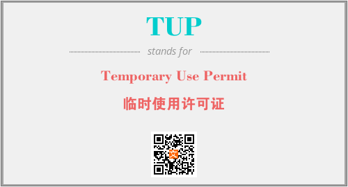 英文缩略词“TUP”经常作为“Temporary Use Permit”的英文缩写来使用,中文表示:“临时使用许可证”。本文将详细介绍英文缩写词TUP所代表英文单词,其对应的中文拼音、详细解释以及在英语中的流行度。此外,还有关于缩略词TUP的分类、应用领域及相关应用示例等。