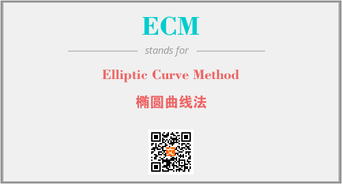 英文缩略词“ECM”经常作为“Elliptic Curve Method”的英文缩写来使用,中文表示:“椭圆曲线法”。本文将详细介绍英文缩写词ECM所代表英文单词,其对应的中文拼音、详细解释以及在英语中的流行度。此外,还有关于缩略词ECM的分类、应用领域及相关应用示例等。
