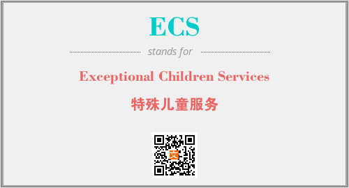 英文缩略词“ECS”经常作为“Exceptional Children Services”的英文缩写来使用,中文表示:“特殊儿童服务”。本文将详细介绍英文缩写词ECS所代表英文单词,其对应的中文拼音、详细解释以及在英语中的流行度。此外,还有关于缩略词ECS的分类、应用领域及相关应用示例等。