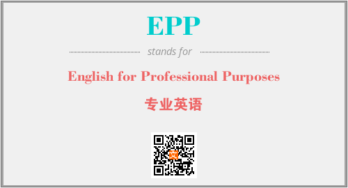 英文缩略词“EPP”经常作为“English for Professional Purposes”的英文缩写来使用,中文表示:“专业英语”。本文将详细介绍英文缩写词EPP所代表英文单词,其对应的中文拼音、详细解释以及在英语中的流行度。此外,还有关于缩略词EPP的分类、应用领域及相关应用示例等。