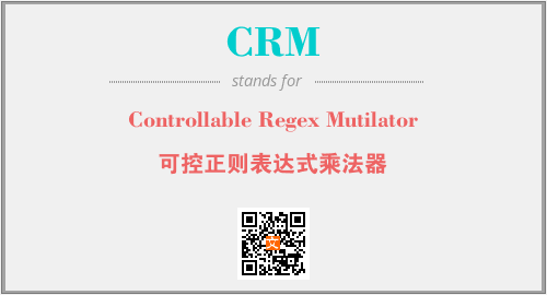 上述内容是“Controllable Regex Mutilator”作为“CRM”的缩写,解释为“可控正则表达式乘法器”时的信息,以及英文缩略词CRM所代表的英文单词,其对应的中文拼音、详细解释以及在英文中的流行度和相关分类、应用领域及应用示例等。