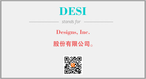 上述内容是“Designs, Inc.”作为“DESI”的缩写,解释为“股份有限公司。”时的信息,以及英文缩略词DESI所代表的英文单词,其对应的中文拼音、详细解释以及在英文中的流行度和相关分类、应用领域及应用示例等。