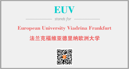 上述内容是“European University Viadrina Frankfurt”作为“EUV”的缩写,解释为“法兰克福维亚德里纳欧洲大学”时的信息,以及英文缩略词EUV所代表的英文单词,其对应的中文拼音、详细解释以及在英文中的流行度和相关分类、应用领域及应用示例等。
