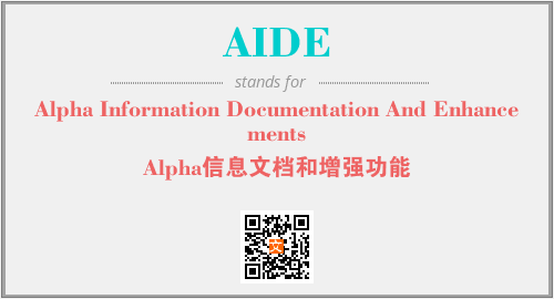 上述内容是“Alpha Information Documentation And Enhancements”作为“AIDE”的缩写,解释为“Alpha信息文档和增强功能”时的信息,以及英文缩略词AIDE所代表的英文单词,其对应的中文拼音、详细解释以及在英文中的流行度和相关分类、应用领域及应用示例等。