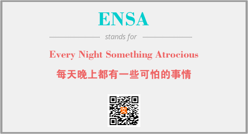 英文缩略词“ENSA”经常作为“Every Night Something Atrocious”的英文缩写来使用,中文表示:“每天晚上都有一些可怕的事情”。本文将详细介绍英文缩写词ENSA所代表英文单词,其对应的中文拼音、详细解释以及在英语中的流行度。此外,还有关于缩略词ENSA的分类、应用领域及相关应用示例等。