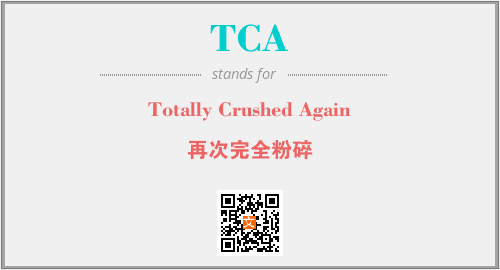 上述内容是“Totally Crushed Again”作为“TCA”的缩写,解释为“再次完全粉碎”时的信息,以及英文缩略词TCA所代表的英文单词,其对应的中文拼音、详细解释以及在英文中的流行度和相关分类、应用领域及应用示例等。