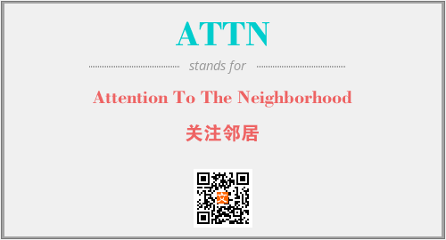 以上为Attention To The Neighborhood英文缩略词ATTN的中文解释,以及该英文缩写在英语的流行度、分类和应用领域方面的信息。