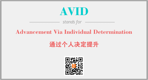 以上为Advancement Via Individual Determination英文缩略词AVID的中文解释,以及该英文缩写在英语的流行度、分类和应用领域方面的信息。