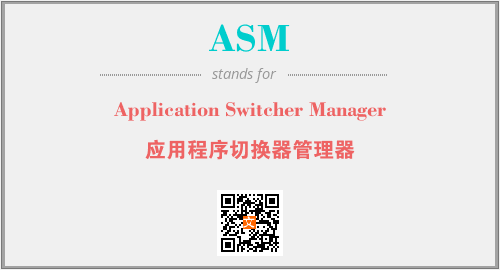 英文缩略词“ASM”经常作为“Application Switcher Manager”的英文缩写来使用,中文表示:“应用程序切换器管理器”。本文将详细介绍英文缩写词ASM所代表英文单词,其对应的中文拼音、详细解释以及在英语中的流行度。此外,还有关于缩略词ASM的分类、应用领域及相关应用示例等。
