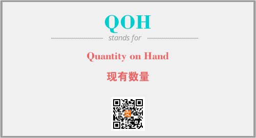 英文缩略词“QOH”经常作为“Quantity on Hand”的英文缩写来使用,中文表示:“现有数量”。本文将详细介绍英文缩写词QOH所代表英文单词,其对应的中文拼音、详细解释以及在英语中的流行度。此外,还有关于缩略词QOH的分类、应用领域及相关应用示例等。