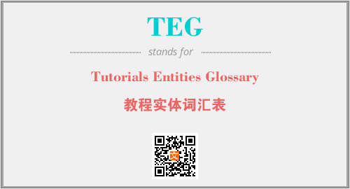上述内容是“Tutorials Entities Glossary”作为“TEG”的缩写,解释为“教程实体词汇表”时的信息,以及英文缩略词TEG所代表的英文单词,其对应的中文拼音、详细解释以及在英文中的流行度和相关分类、应用领域及应用示例等。