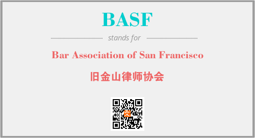 上述内容是“Bar Association of San Francisco”作为“BASF”的缩写,解释为“旧金山律师协会”时的信息,以及英文缩略词BASF所代表的英文单词,其对应的中文拼音、详细解释以及在英文中的流行度和相关分类、应用领域及应用示例等。