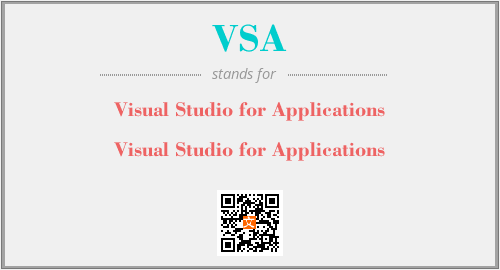 英文缩略词“VSA”经常作为“Visual Studio for Applications”的英文缩写来使用,中文表示:“Visual Studio for Applications”。本文将详细介绍英文缩写词VSA所代表英文单词,其对应的中文拼音、详细解释以及在英语中的流行度。此外,还有关于缩略词VSA的分类、应用领域及相关应用示例等。