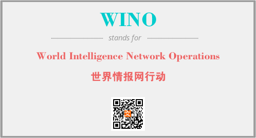上述内容是“World Intelligence Network Operations”作为“WINO”的缩写,解释为“世界情报网行动”时的信息,以及英文缩略词WINO所代表的英文单词,其对应的中文拼音、详细解释以及在英文中的流行度和相关分类、应用领域及应用示例等。