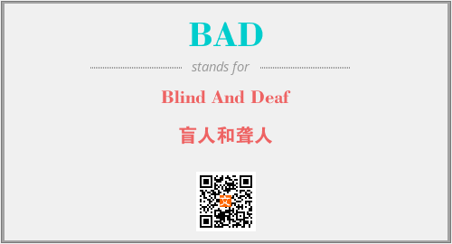 上述内容是“Blind And Deaf”作为“BAD”的缩写,解释为“盲人和聋人”时的信息,以及英文缩略词BAD所代表的英文单词,其对应的中文拼音、详细解释以及在英文中的流行度和相关分类、应用领域及应用示例等。