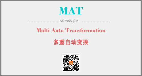 上述内容是“Multi Auto Transformation”作为“MAT”的缩写,解释为“多重自动变换”时的信息,以及英文缩略词MAT所代表的英文单词,其对应的中文拼音、详细解释以及在英文中的流行度和相关分类、应用领域及应用示例等。