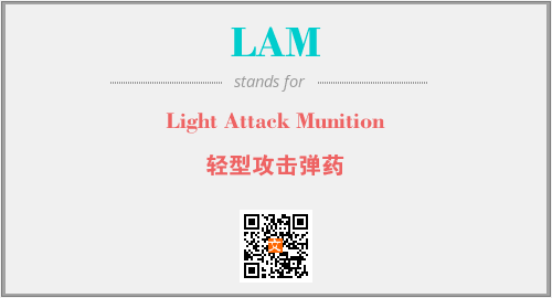 上述内容是“Light Attack Munition”作为“LAM”的缩写,解释为“轻型攻击弹药”时的信息,以及英文缩略词LAM所代表的英文单词,其对应的中文拼音、详细解释以及在英文中的流行度和相关分类、应用领域及应用示例等。