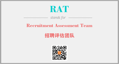 以上为Recruitment Assessment Team英文缩略词RAT的中文解释,以及该英文缩写在英语的流行度、分类和应用领域方面的信息。