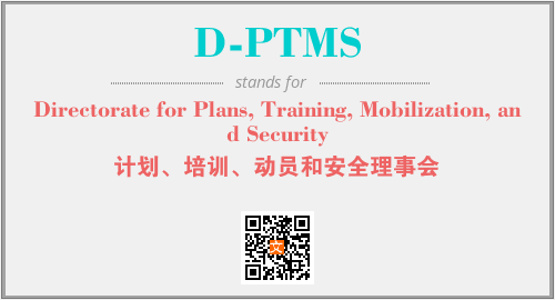 英文缩略词“D-PTMS”经常作为“Directorate for Plans, Training, Mobilization, and Security”的英文缩写来使用,中文表示:“计划、培训、动员和安全理事会”。本文将详细介绍英文缩写词D-PTMS所代表英文单词,其对应的中文拼音、详细解释以及在英语中的流行度。此外,还有关于缩略词D-PTMS的分类、应用领域及相关应用示例等。