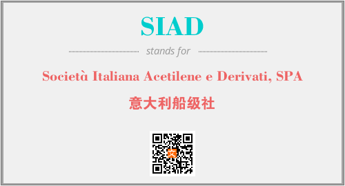 上述内容是“Società Italiana Acetilene e Derivati, SPA”作为“SIAD”的缩写,解释为“意大利船级社”时的信息,以及英文缩略词SIAD所代表的英文单词,其对应的中文拼音、详细解释以及在英文中的流行度和相关分类、应用领域及应用示例等。