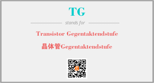 上述内容是“Transistor Gegentaktendstufe”作为“TG”的缩写,解释为“晶体管Gegentaktendstufe”时的信息,以及英文缩略词TG所代表的英文单词,其对应的中文拼音、详细解释以及在英文中的流行度和相关分类、应用领域及应用示例等。