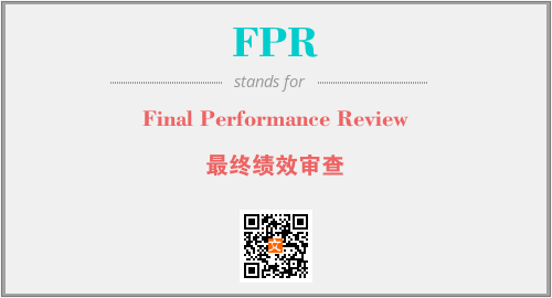 上述内容是“Final Performance Review”作为“FPR”的缩写,解释为“最终绩效审查”时的信息,以及英文缩略词FPR所代表的英文单词,其对应的中文拼音、详细解释以及在英文中的流行度和相关分类、应用领域及应用示例等。