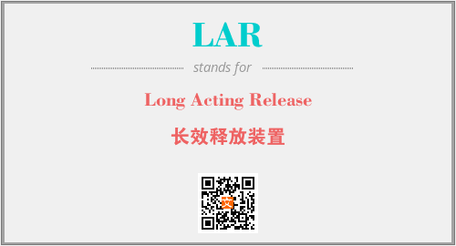 上述内容是“Long Acting Release”作为“LAR”的缩写,解释为“长效释放装置”时的信息,以及英文缩略词LAR所代表的英文单词,其对应的中文拼音、详细解释以及在英文中的流行度和相关分类、应用领域及应用示例等。