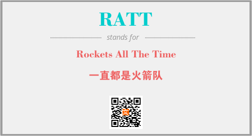 英文缩略词“RATT”经常作为“Rockets All The Time”的英文缩写来使用,中文表示:“一直都是火箭队”。本文将详细介绍英文缩写词RATT所代表英文单词,其对应的中文拼音、详细解释以及在英语中的流行度。此外,还有关于缩略词RATT的分类、应用领域及相关应用示例等。
