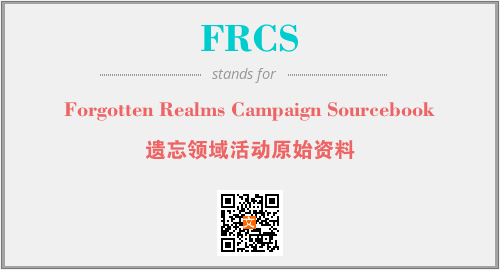 上述内容是“Forgotten Realms Campaign Sourcebook”作为“FRCS”的缩写,解释为“遗忘领域活动原始资料”时的信息,以及英文缩略词FRCS所代表的英文单词,其对应的中文拼音、详细解释以及在英文中的流行度和相关分类、应用领域及应用示例等。