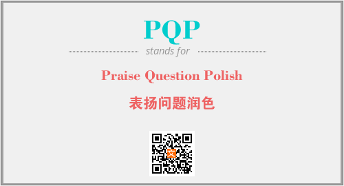 英文缩略词“PQP”经常作为“Praise Question Polish”的英文缩写来使用,中文表示:“表扬问题润色”。本文将详细介绍英文缩写词PQP所代表英文单词,其对应的中文拼音、详细解释以及在英语中的流行度。此外,还有关于缩略词PQP的分类、应用领域及相关应用示例等。