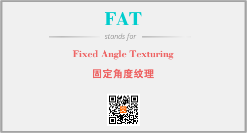 英文缩略词“FAT”经常作为“Fixed Angle Texturing”的英文缩写来使用,中文表示:“固定角度纹理”。本文将详细介绍英文缩写词FAT所代表英文单词,其对应的中文拼音、详细解释以及在英语中的流行度。此外,还有关于缩略词FAT的分类、应用领域及相关应用示例等。