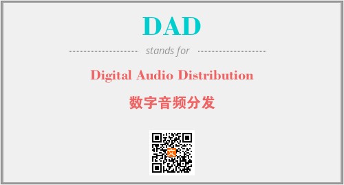 上述内容是“Digital Audio Distribution”作为“DAD”的缩写,解释为“数字音频分发”时的信息,以及英文缩略词DAD所代表的英文单词,其对应的中文拼音、详细解释以及在英文中的流行度和相关分类、应用领域及应用示例等。