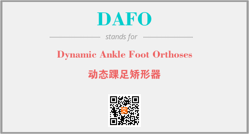 上述内容是“Dynamic Ankle Foot Orthoses”作为“DAFO”的缩写,解释为“动态踝足矫形器”时的信息,以及英文缩略词DAFO所代表的英文单词,其对应的中文拼音、详细解释以及在英文中的流行度和相关分类、应用领域及应用示例等。