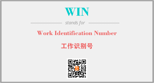 上述内容是“Work Identification Number”作为“WIN”的缩写,解释为“工作识别号”时的信息,以及英文缩略词WIN所代表的英文单词,其对应的中文拼音、详细解释以及在英文中的流行度和相关分类、应用领域及应用示例等。