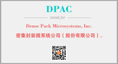 上述内容是“Dense Pack Microsystems, Inc.”作为“DPAC”的缩写,解释为“密集封装微系统公司(股份有限公司)。”时的信息,以及英文缩略词DPAC所代表的英文单词,其对应的中文拼音、详细解释以及在英文中的流行度和相关分类、应用领域及应用示例等。