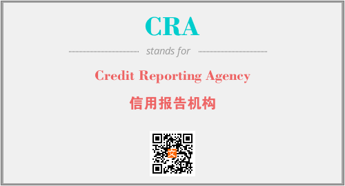 英文缩略词“CRA”经常作为“Credit Reporting Agency”的英文缩写来使用,中文表示:“信用报告机构”。本文将详细介绍英文缩写词CRA所代表英文单词,其对应的中文拼音、详细解释以及在英语中的流行度。此外,还有关于缩略词CRA的分类、应用领域及相关应用示例等。