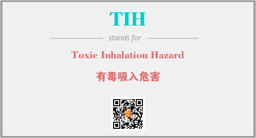 英文缩略词“TIH”经常作为“Toxic Inhalation Hazard”的英文缩写来使用,中文表示:“有毒吸入危害”。本文将详细介绍英文缩写词TIH所代表英文单词,其对应的中文拼音、详细解释以及在英语中的流行度。此外,还有关于缩略词TIH的分类、应用领域及相关应用示例等。