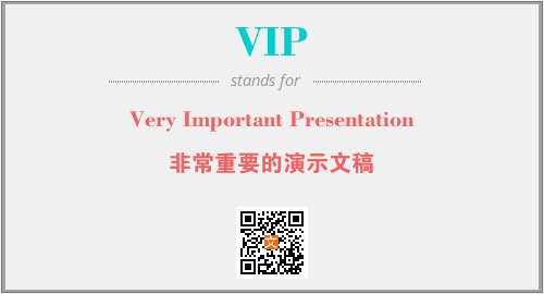 英文缩略词“VIP”经常作为“Very Important Presentation”的英文缩写来使用,中文表示:“非常重要的演示文稿”。本文将详细介绍英文缩写词VIP所代表英文单词,其对应的中文拼音、详细解释以及在英语中的流行度。此外,还有关于缩略词VIP的分类、应用领域及相关应用示例等。