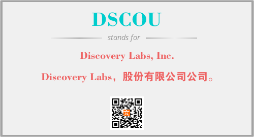 上述内容是“Discovery Labs, Inc.”作为“DSCOU”的缩写,解释为“Discovery Labs,股份有限公司公司。”时的信息,以及英文缩略词DSCOU所代表的英文单词,其对应的中文拼音、详细解释以及在英文中的流行度和相关分类、应用领域及应用示例等。