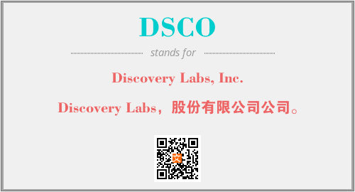 上述内容是“Discovery Labs, Inc.”作为“DSCO”的缩写,解释为“Discovery Labs,股份有限公司公司。”时的信息,以及英文缩略词DSCO所代表的英文单词,其对应的中文拼音、详细解释以及在英文中的流行度和相关分类、应用领域及应用示例等。
