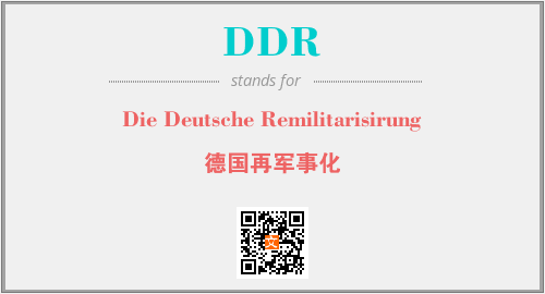 英文缩略词“DDR”经常作为“Die Deutsche Remilitarisirung”的英文缩写来使用,中文表示:“德国再军事化”。本文将详细介绍英文缩写词DDR所代表英文单词,其对应的中文拼音、详细解释以及在英语中的流行度。此外,还有关于缩略词DDR的分类、应用领域及相关应用示例等。