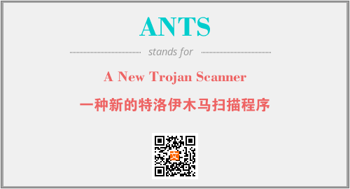 上述内容是“A New Trojan Scanner”作为“ANTS”的缩写,解释为“一种新的特洛伊木马扫描程序”时的信息,以及英文缩略词ANTS所代表的英文单词,其对应的中文拼音、详细解释以及在英文中的流行度和相关分类、应用领域及应用示例等。
