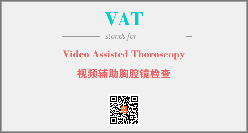 英文缩略词“VAT”经常作为“Video Assisted Thoroscopy”的英文缩写来使用,中文表示:“视频辅助胸腔镜检查”。本文将详细介绍英文缩写词VAT所代表英文单词,其对应的中文拼音、详细解释以及在英语中的流行度。此外,还有关于缩略词VAT的分类、应用领域及相关应用示例等。