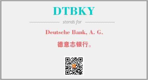 上述内容是“Deutsche Bank, A. G.”作为“DTBKY”的缩写,解释为“德意志银行。”时的信息,以及英文缩略词DTBKY所代表的英文单词,其对应的中文拼音、详细解释以及在英文中的流行度和相关分类、应用领域及应用示例等。