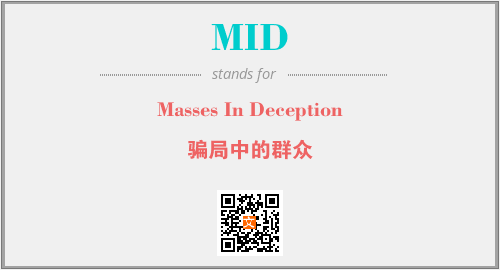 英文缩略词“MID”经常作为“Masses In Deception”的英文缩写来使用,中文表示:“骗局中的群众”。本文将详细介绍英文缩写词MID所代表英文单词,其对应的中文拼音、详细解释以及在英语中的流行度。此外,还有关于缩略词MID的分类、应用领域及相关应用示例等。