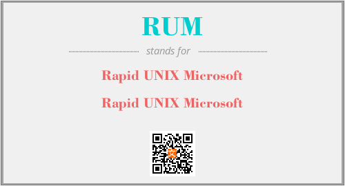 英文缩略词“RUM”经常作为“Rapid UNIX Microsoft”的英文缩写来使用,中文表示:“Rapid UNIX Microsoft”。本文将详细介绍英文缩写词RUM所代表英文单词,其对应的中文拼音、详细解释以及在英语中的流行度。此外,还有关于缩略词RUM的分类、应用领域及相关应用示例等。